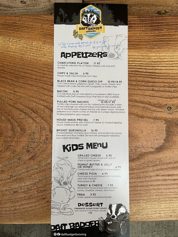 Daft Badger Brewing, located in Coeur D'alene, ID, offers an array of amenities including takeout, delivery, vegetarian options, and even cryptocurrency payments. Customer reviews rave about the delicious gyros, fantastic beer flights, and massive portions of nachos. The welcoming neighborhood pub atmosphere, alongside great food and beer, makes it a standout choice in the area. With a fun patio and excellent service, Daft Badger Brewing is highly recommended for those looking for an enjoyable dining experience. Whether you're a local or just visiting, this brewery is a must-visit for tasty food and delightful drinks.